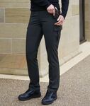 63% Polyester (30% Recycled), 34% Viscose, 3% LYCRA® Elastane. Tailored leg, 2 cargo pockets, 2 hip patch pockets, 2 front pockets, button fastening, metal key loop. Half hem width at size 12R = 18cm